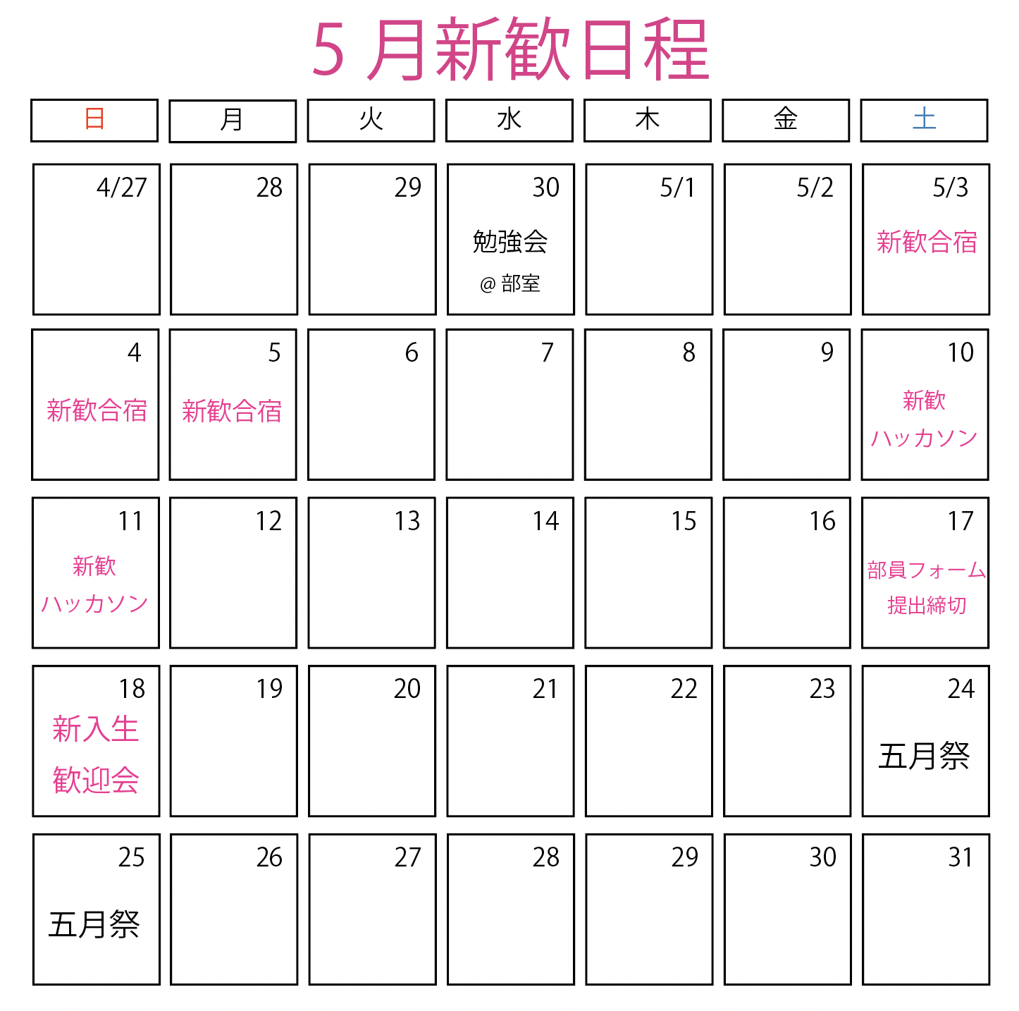 - 説明会 (任意)・学習系イベント (新歓合宿は予定が合わず参加できない)